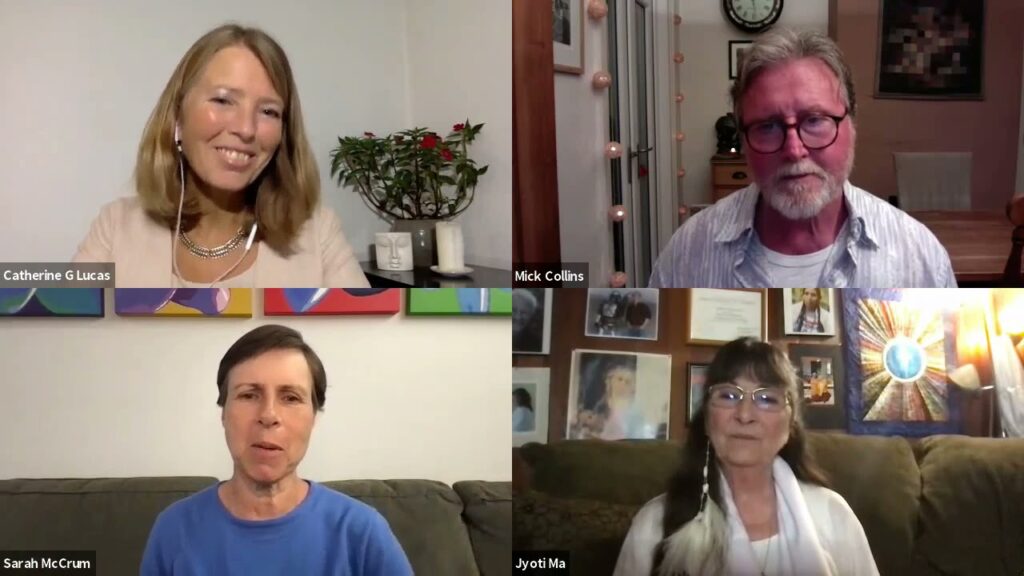 Participating in this conversation, with the theme Sacred Economics for a Sacred Earth, are Sarah McCrum, Jyoti Ma, Mick Collins and Catherine G. Lucas.